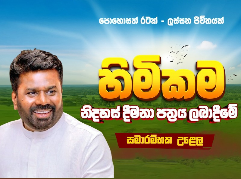 අවසර පත්ර හා දීමනා පත්ර මත ප්රදානය කර ඇති ඉඩම් සංවර්ධනය කරමින් භුක්ති විඳින ගොවි ජනතාව ප්රමුඛ මහජනතාවට එම ඉඩම්වල පරම අයිතිය ප්රදානය කෙරෙන ‘හිමිකම’ නිදහස් ප්රදානපත්ර පිළිගැන්වීමේ ජාතික වැඩසටහනේ සමාරම්භක අවස්ථාව ජනාධිපති අනුර කුමාර දිසානායක මහතාගේ ප්රධානත්වයෙන් හෙට (27) ප.ව 2.00ට අනුරාධපුර කොරකහවැව උතුරු මැද පළාත් සභා ශ්රවණාගාරයේදී පැවැත් වේ.